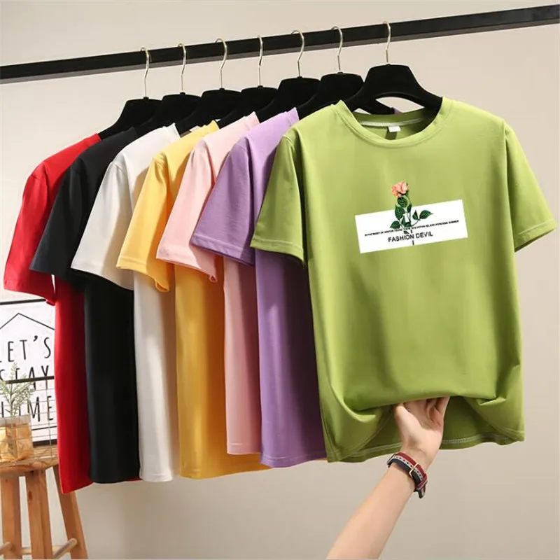 Большие размеры, женские летние футболки Новинка 2019 года, футболка с круглым вырезом и короткими рукавами с милым рисунком для девочек, студ...
