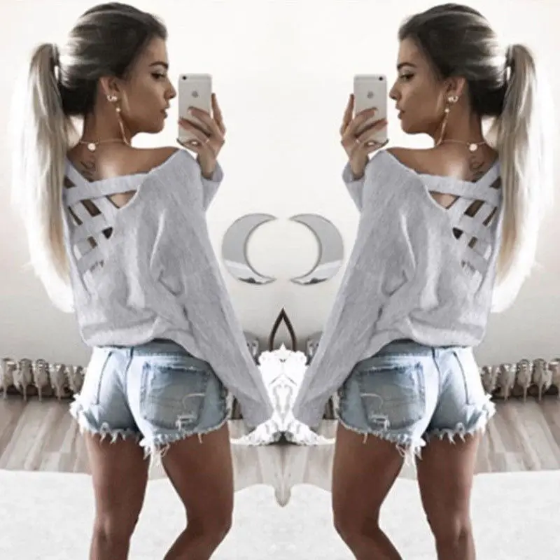 Лето 2017 Женская хлопковая Футболка с круглым вырезом с коротким рукавом с открытыми плечами сексуальные Свободные повседневные женские фу...