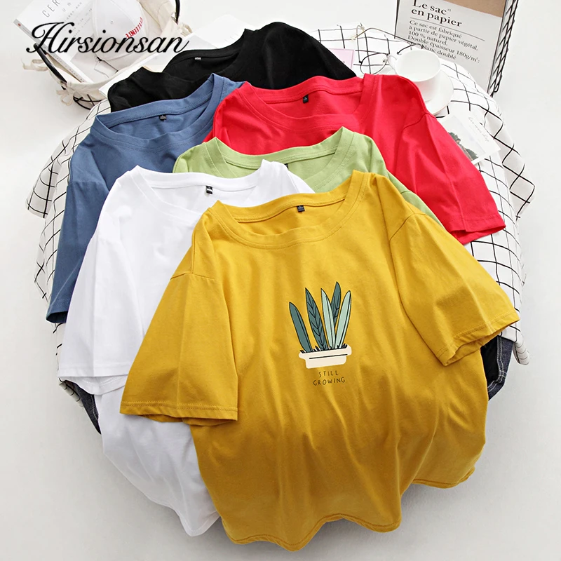 Hirsionsan винтажные женские футболки с растительным принтом, Футболка Harajuku с коротким рукавом, мягкие повседневные футболки из 100% хлопка, шикарные негабаритные Новые Топы