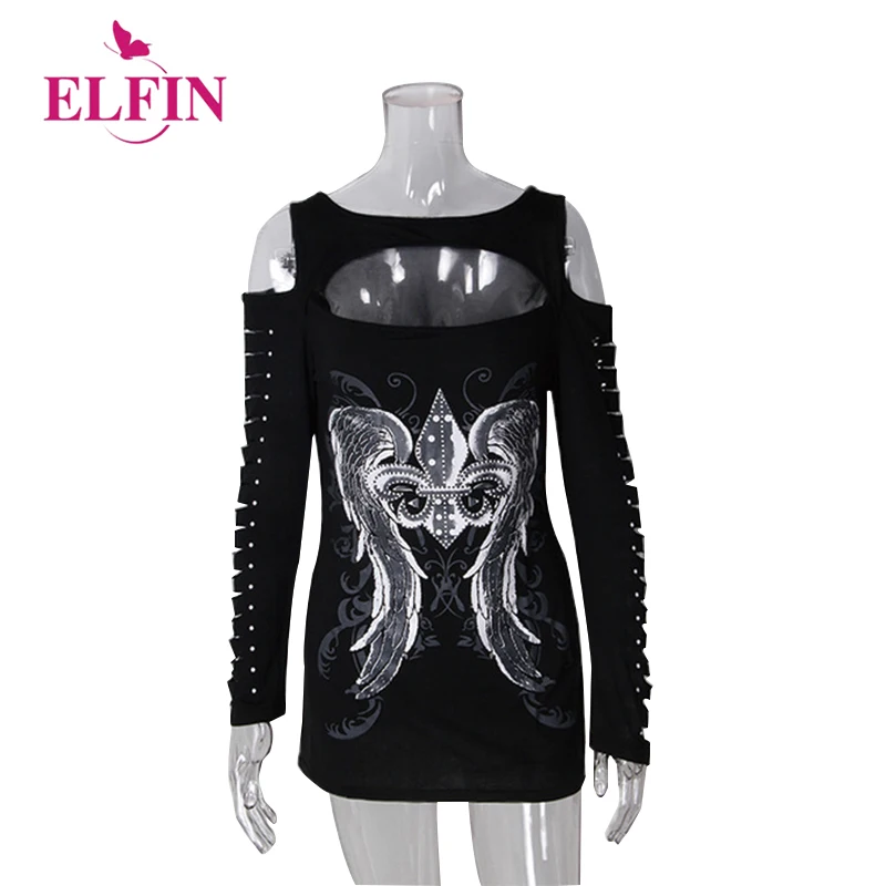 2018 модные женские туфли сексуальные футболки с длинным рукавом выдалбливают топы с принтом толстовки с крылышками футболка Повседневное о...