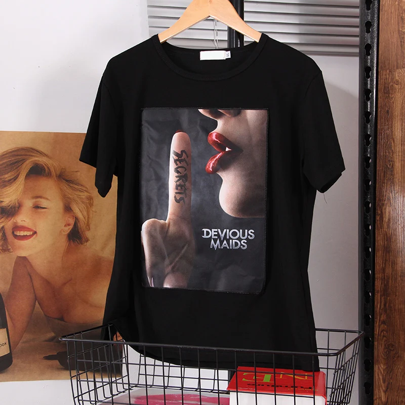 DONAMOL Летняя женская белая одежда 2020 Новая мода западный стиль свободные футболки размера плюс черная печать наклейка Топ женский