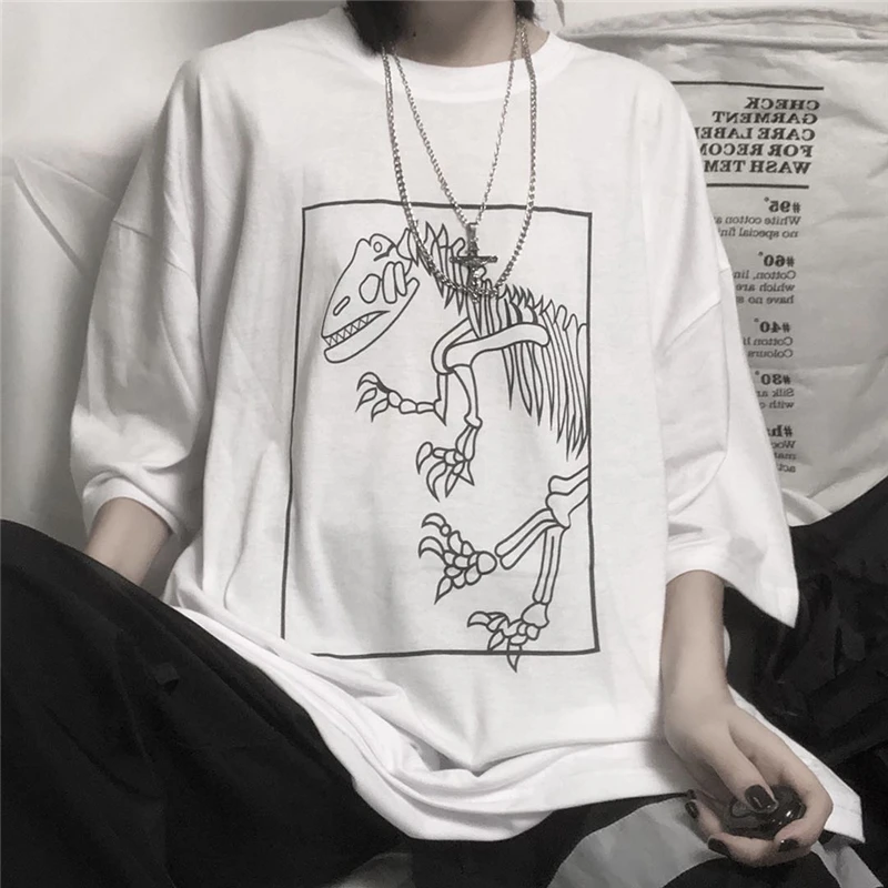 Летняя свободная футболка с короткими рукавами в Корейском стиле с принтом динозавра Женская футболка для студентов