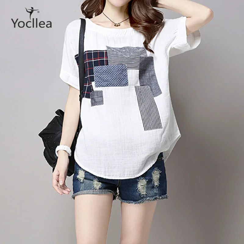 Винтажная размера плюс женская летняя футболка футболки с коротким рукавом женские свободные хлопковые повседневные топы футболки женская одежда ZY257
