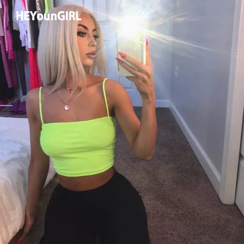 HEYounGIRL, неоновый, желтый, с открытой спиной, сексуальный топ на бретельках, женский, в стиле панк, Харадзюку, укороченный топ на бретельках, летний
