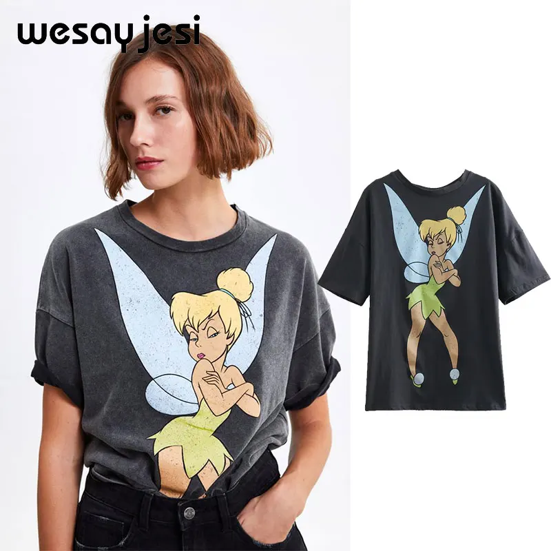 2019 летняя модная футболка Женская harajuku Высокая уличная мультфильм Ангел принт 100% хлопок с круглым вырезом свободная футболка Топы Большие ...