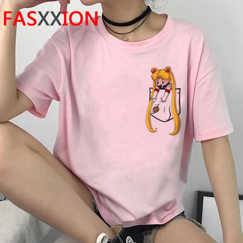 Kawaii Сейлор Мун забавная мультяшная футболка для женщин Harajuku Ullzang 90s футболка Эстетическая Милая футболка японское аниме топ тройники Женски...