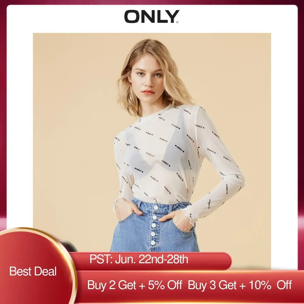 Только Женская Базовая футболка с длинными рукавами и буквенным принтом | 120102515
