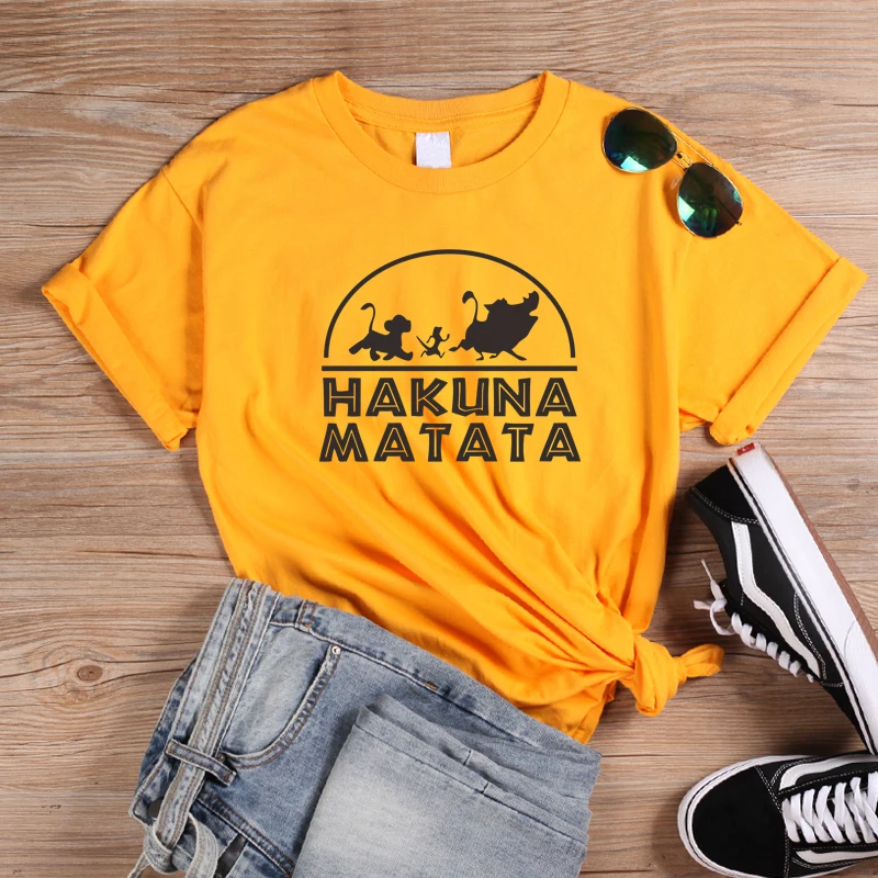 ONSEME Hakuna Matata футболка с буквенным принтом Милая футболка с рисунком льва и короля Симбы Женские повседневные свободные хлопковые футболки т...