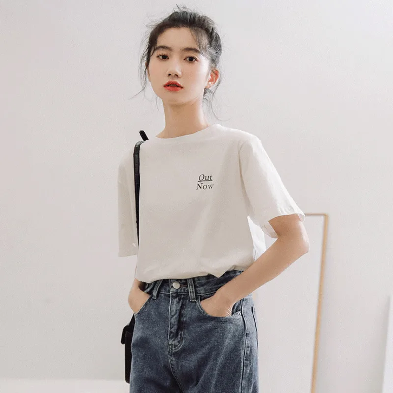 Корейский Harajuku женские футболки 2019 лето новый с круглым вырезом короткий рукав свободная футболка Femme Повседневная Уличная