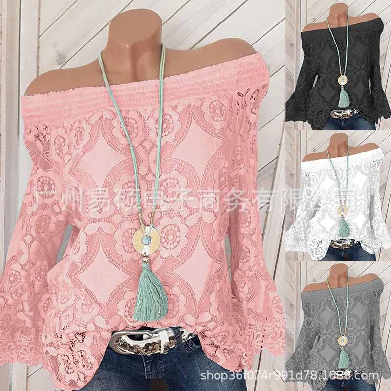 Осенне-зимние женские кружевные топы, модная рубашка с длинными рукавами в виде листа лотоса, женские сексуальные топы с вырезами на плечах, большие размеры, розовые, красные Топы