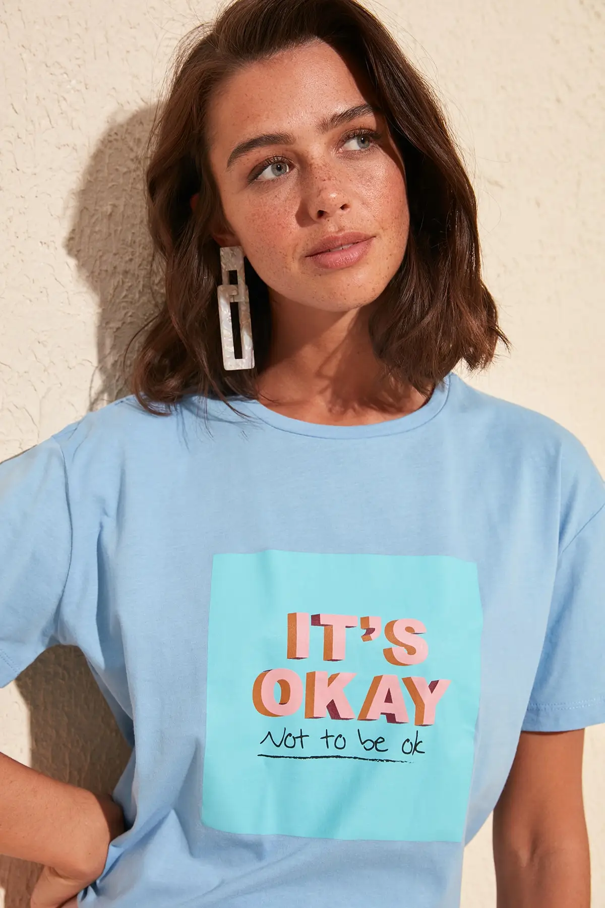 Укороченная трикотажная футболка с принтом Trendyol TWOSS20TS0436