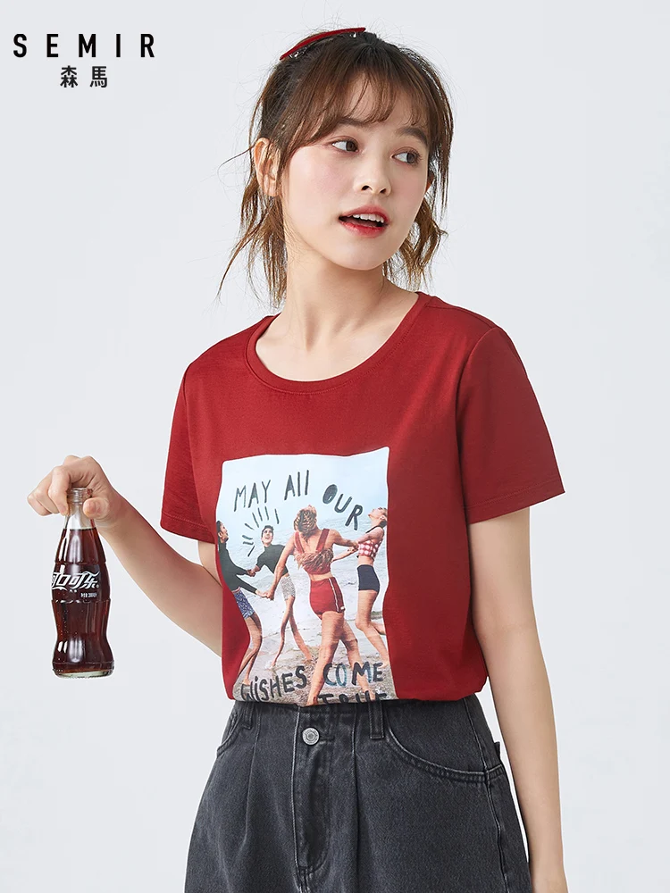 Женская футболка с короткими рукавами Semir, пуловер с круглым вырезом в стиле ретро, лето 2019