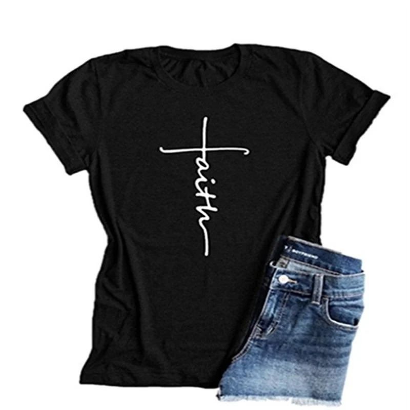 Женская хлопковая футболка с надписью FAITH, Повседневная забавная футболка для девушек, хипстерская футболка с логотипом, одежда