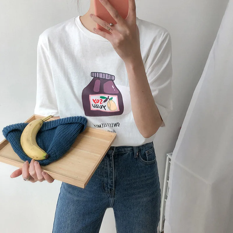 4 цвета женские футболки 2019 японский стиль лето мультфильм принт короткий рукав Футболка femme универсальные повседневные топы (F3657)