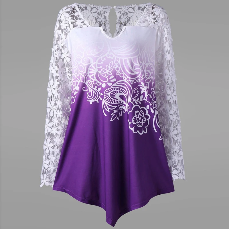 Кружевные лоскутные Футболки с принтом для женщин 2019 новые осенние модные футболки с длинными рукавами женские повседневные свободные фут...