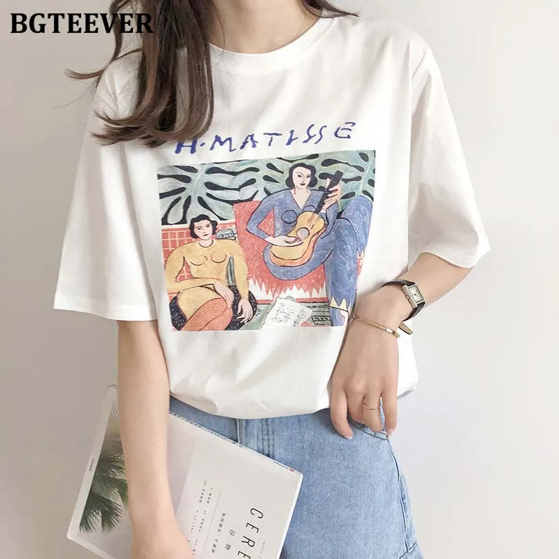 BGTEEVER модная короткая футболка с круглым вырезом, Женская хлопковая Футболка с буквенным принтом, летняя Свободная Повседневная футболка, новинка 2020