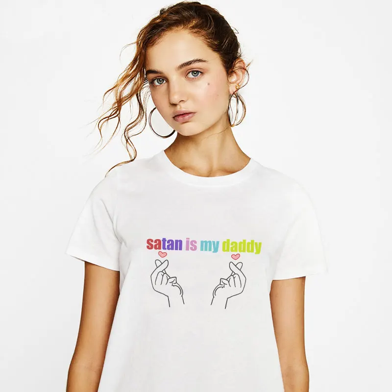 CZCCWD футболки Для женщин Лето 2019 Мода Harajuku уличная сатана мой папа Цвет футболка с буквенным принтом Tumblr кавайная футболка