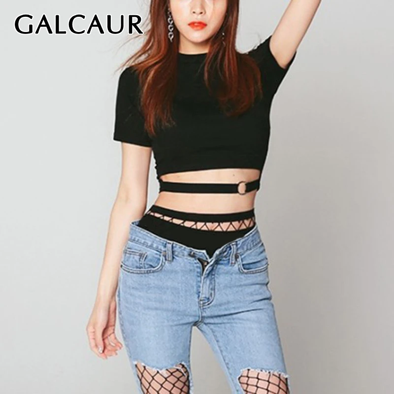 Женская футболка с круглым вырезом GALCAUR, повседневная облегающая футболка с коротким рукавом и высокой талией, модная одежда