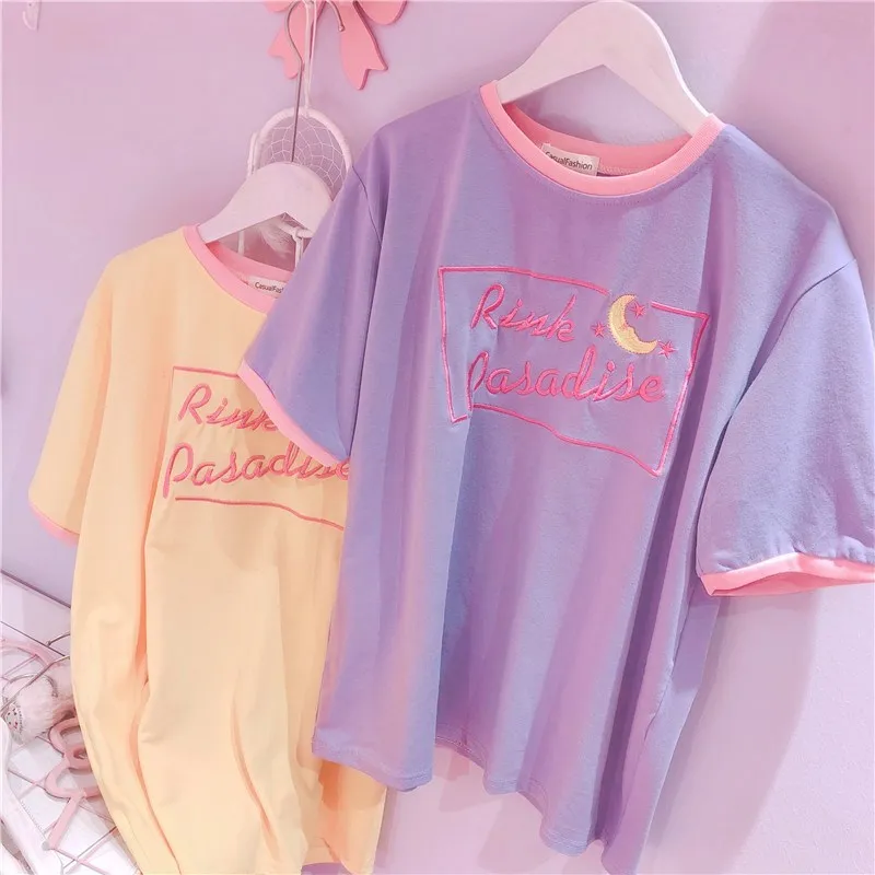 Женская модная футболка в Корейском стиле ulzzang Harajuku в японском стиле, милая мягкая рубашка для студентов с вышивкой в виде Луны