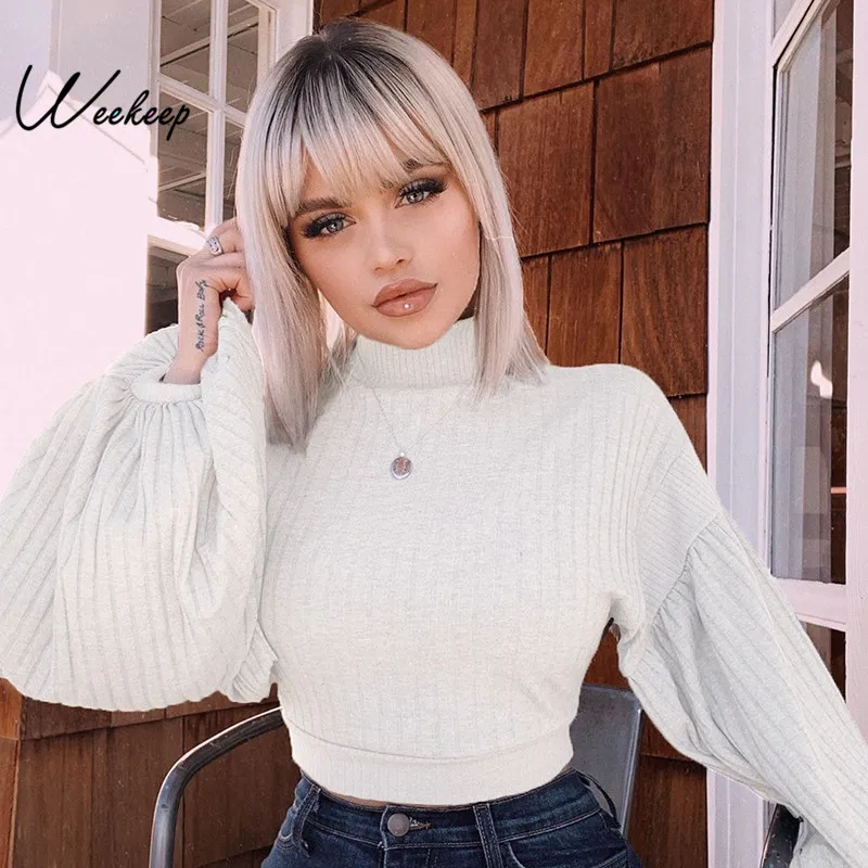 Weekeep женская укороченная Приталенная футболка с рукавом-фонариком, белая уличная весенне-осенняя футболка, женский укороченный топ 2019