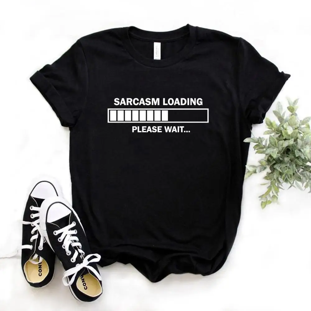 Сарказм загрузка, пожалуйста, подождите с буквенным принтом Для женщин футболка хлопок Повседневное забавная Футболка для леди верхний тро...