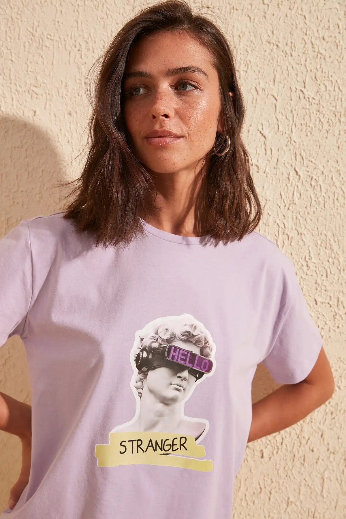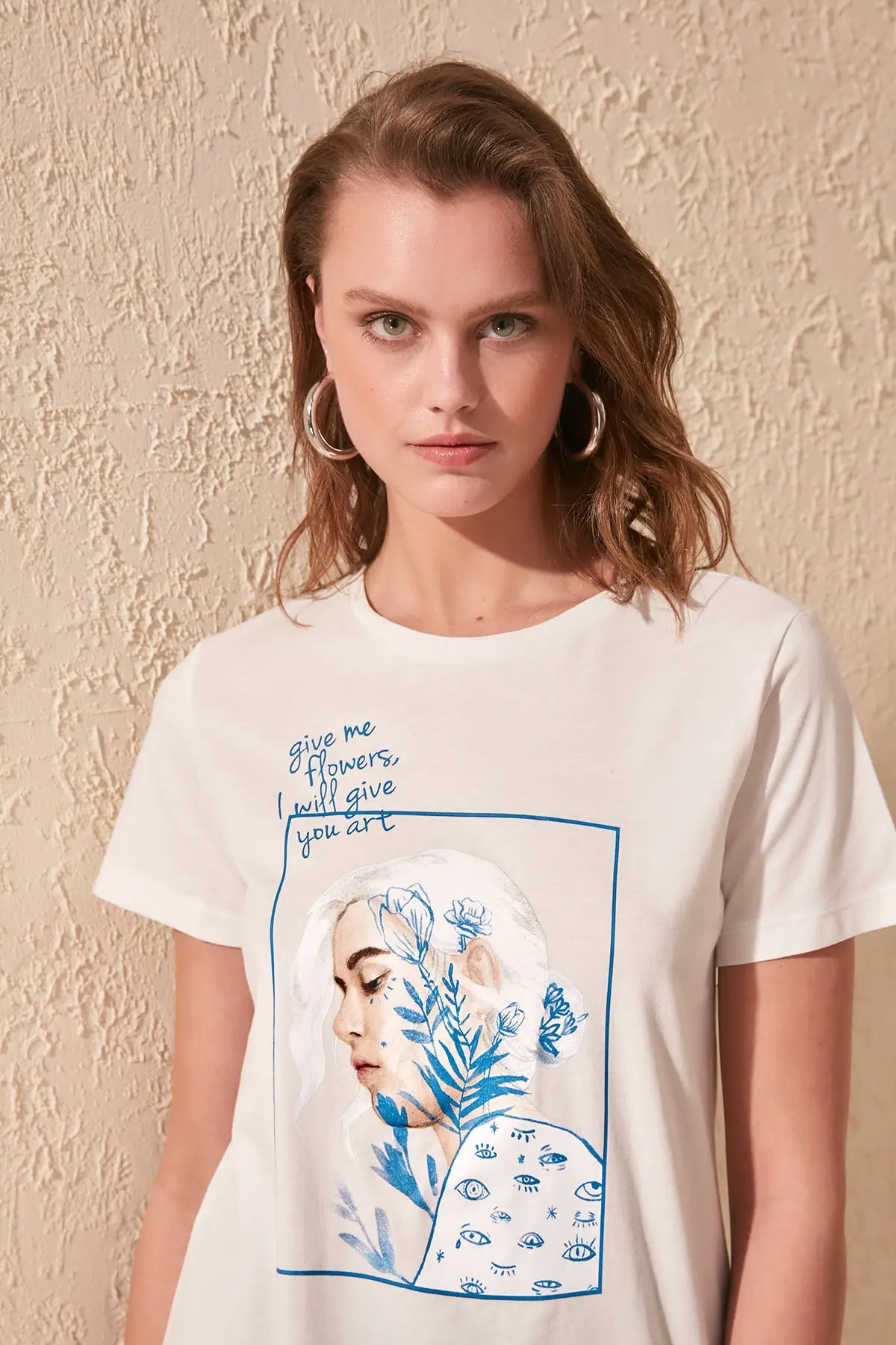 Trendyol Базовая Трикотажная футболка с принтом TWOSS20TS0811