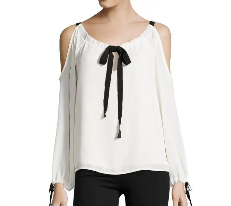 Новинка 2020, весна-лето, женская шифоновая Кружевная футболка с длинным рукавом и галстуком-бабочкой, большие размеры 6xl, женская футболка с длинным рукавом