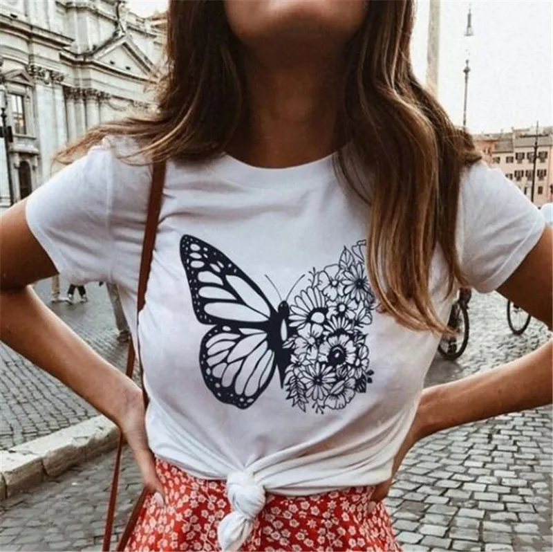 Женская футболка с бабочкой; футболка с круглым вырезом и короткими рукавами с принтом; Топ