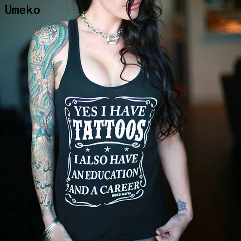 Женский топ с надписью Umeko 2020 Yes I Have A Tattoos, готический Повседневный Топ без рукавов, лето 2020