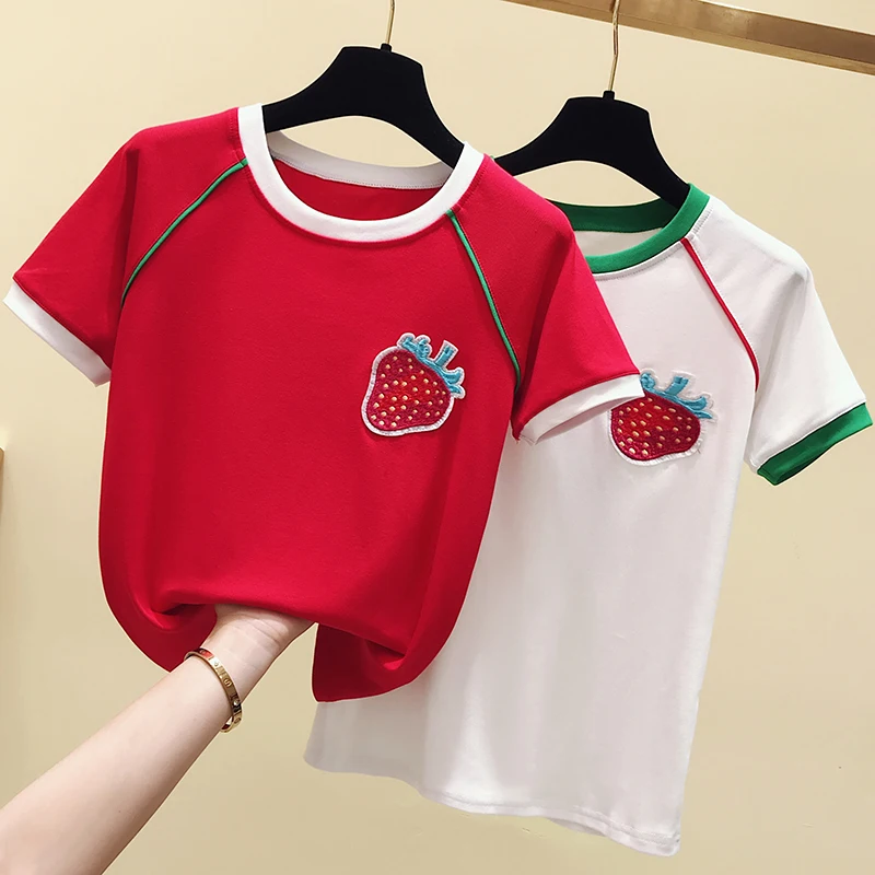 Gkfnmt Camisetas Mujer 2020 Футболка женская футболка с вышивкой клубники женские летние топы Повседневная футболка с коротким рукавом Femme
