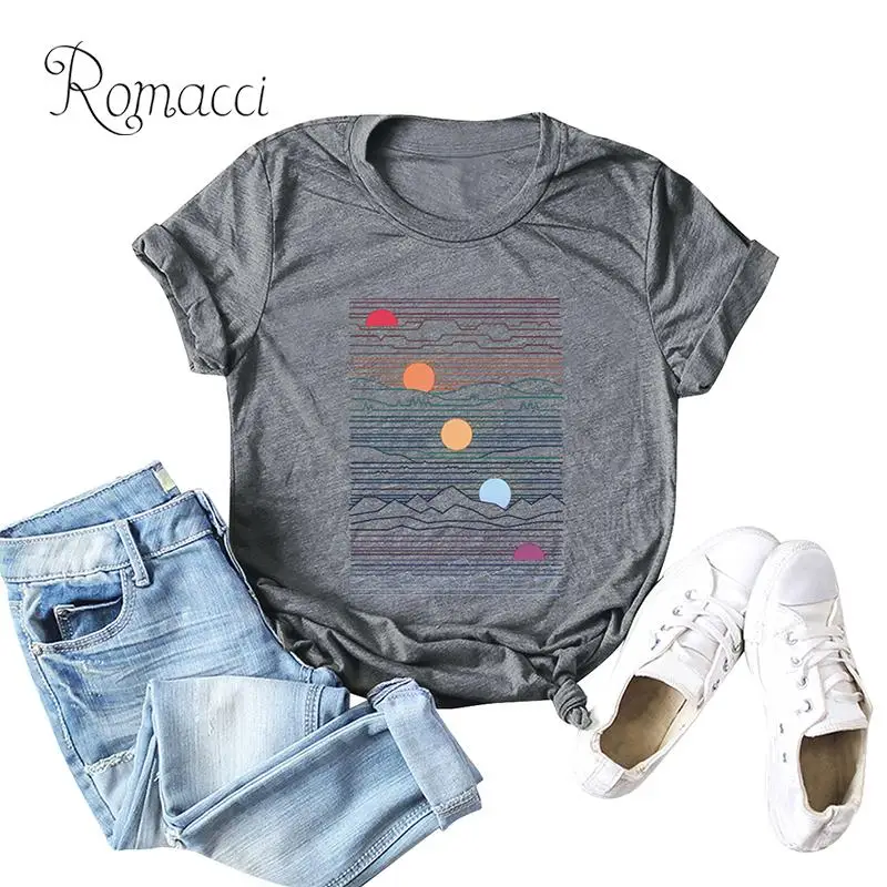 Футболка romachi женская, Повседневная хлопковая футболка с коротким рукавом и принтом Sunrise, 5XL