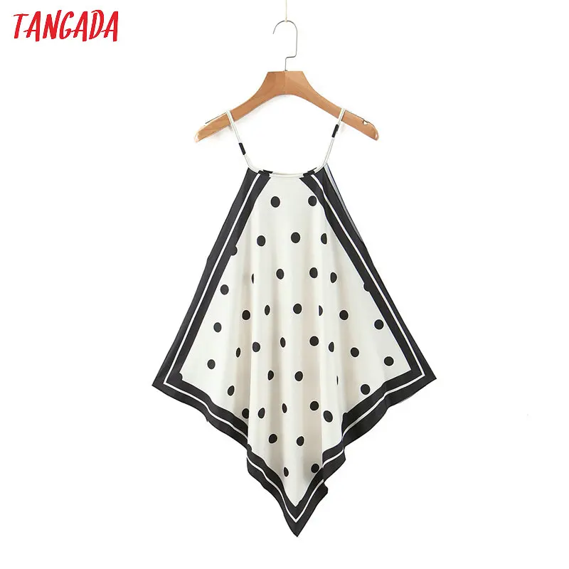 Женская блузка без рукавов Tangada, повседневная однотонная блузка в горошек с открытой спиной и бретелькой через шею, SL255
