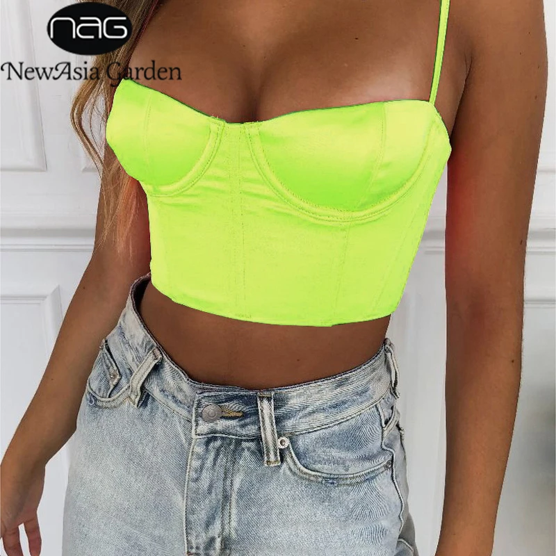 Атласный укороченный топ NewAsia, топ без рукавов на бретелях, Женский однотонный топ черного и розового цвета, тонкие резервуары с низким выре...