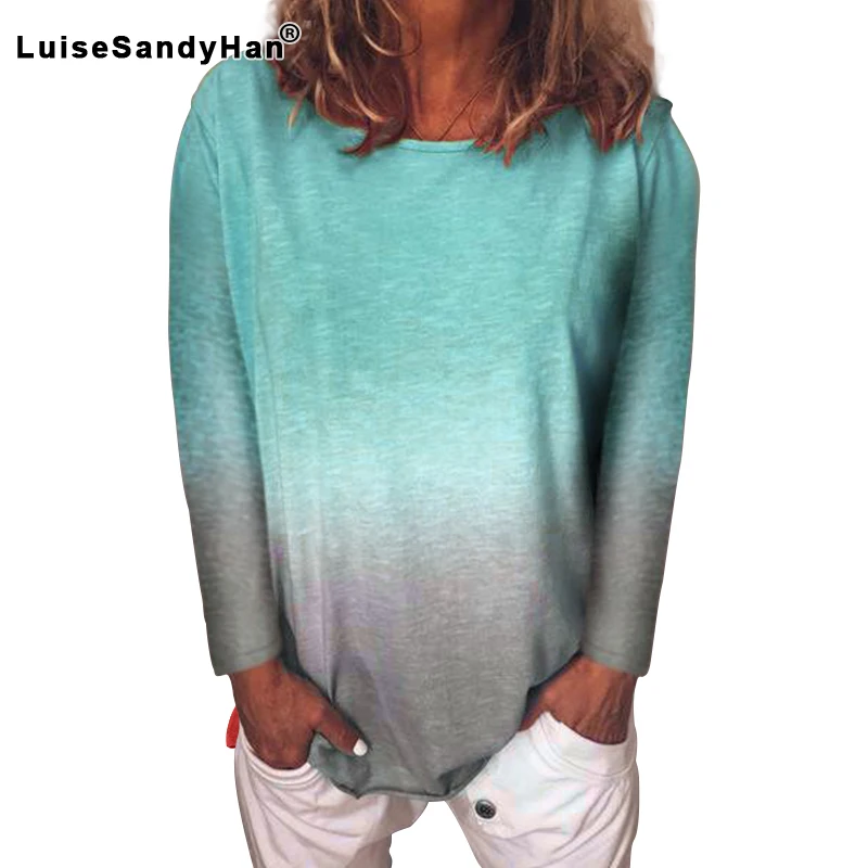 Женская футболка с принтом радуги, Свободный Топ с длинным рукавом и круглым вырезом, большой размер, 2020