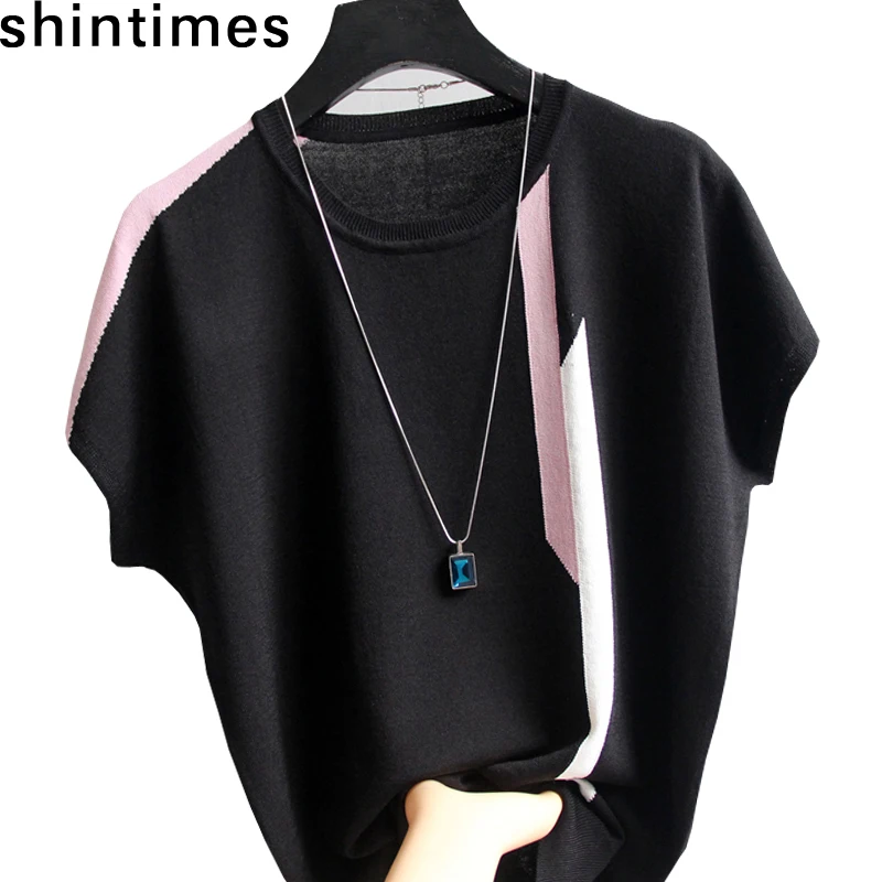 Shintimes 2020 летние шелковые свободные топы с круглым вырезом Корейская Футболка женская цветная подходящая тонкая трикотажная футболка с коротким рукавом женская