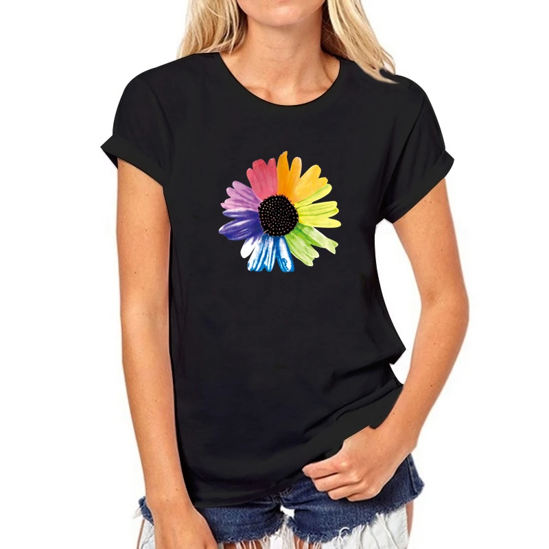 Харадзюку, летняя женская футболка размера плюс M-3XL, Новая модная женская футболка с цветочным принтом и коротким рукавом, повседневные жен...