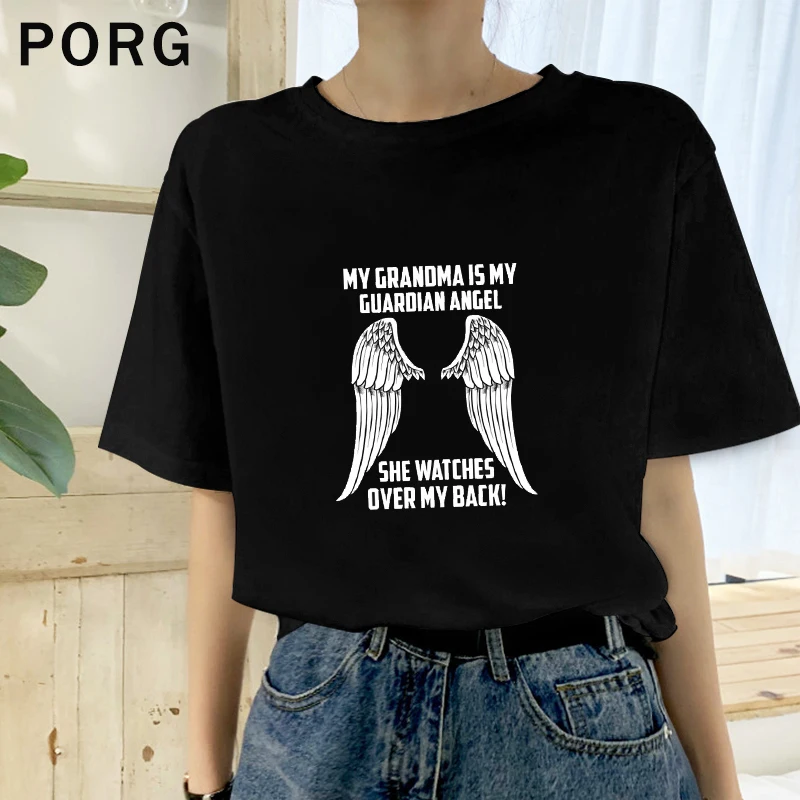 Женская футболка с надписью My Grandma Is My Guardian Angel Tumblr, модная Милая футболка с графическим рисунком, топы для мужчин