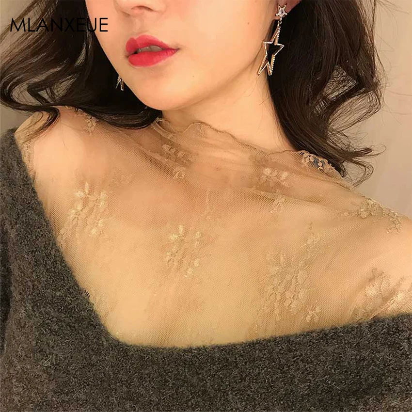 Соблазнительная прозрачная из тюли Футболка женская винтажная печать перспектива полые Длинные рукава Топы дышащие элегантные модные жен...