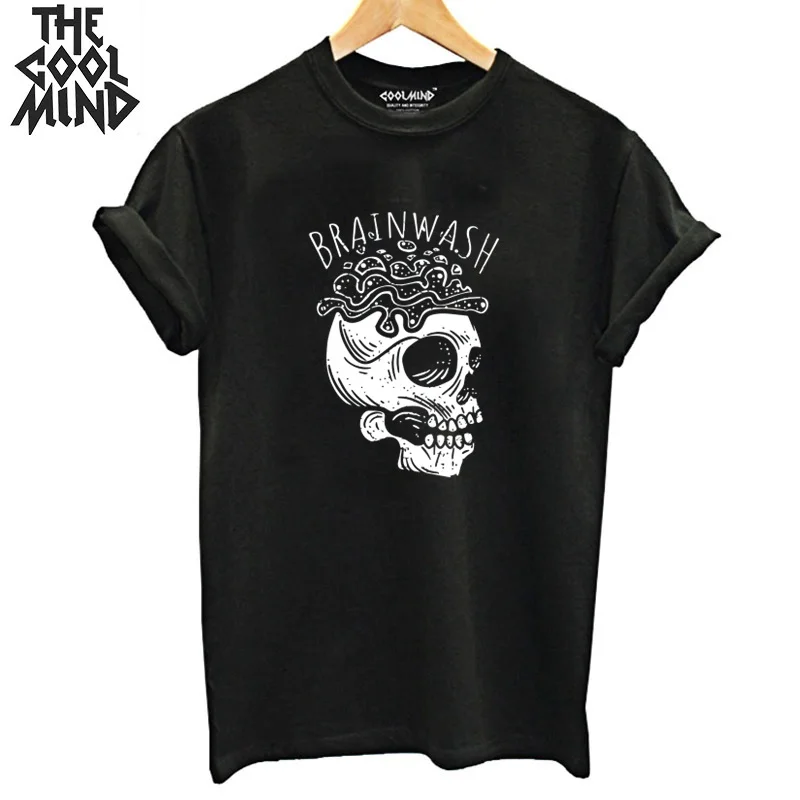 COOLMIND 100% хлопок Прохладный Череп brainwash женская футболка повседневная с коротким рукавом женская футболка крутая с круглым вырезом Футболка ...