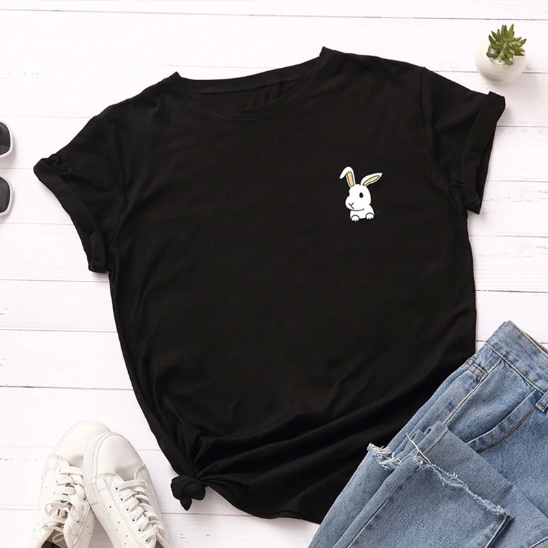 Женская футболка с круглым вырезом и коротким рукавом, Повседневная Свободная футболка с принтом кролика, большие размеры 5XL, лето 2020