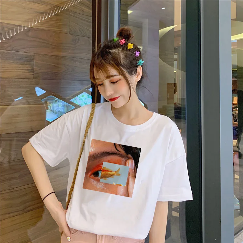 Футболка с рыбьими глазами Женская Harajuku Эстетическая футболка хип-хоп модная Tumblr графическая стильная футболка уличная футболка женские п...