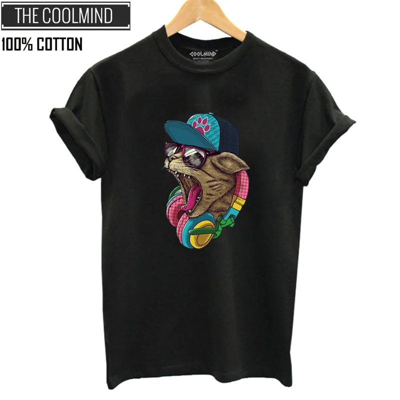 COOLMIND CA0217B 100% хлопок кошка женщины печати Футболка Повседневная футболка с коротким рукавом женская летняя обувь крутая футболка женские фу...