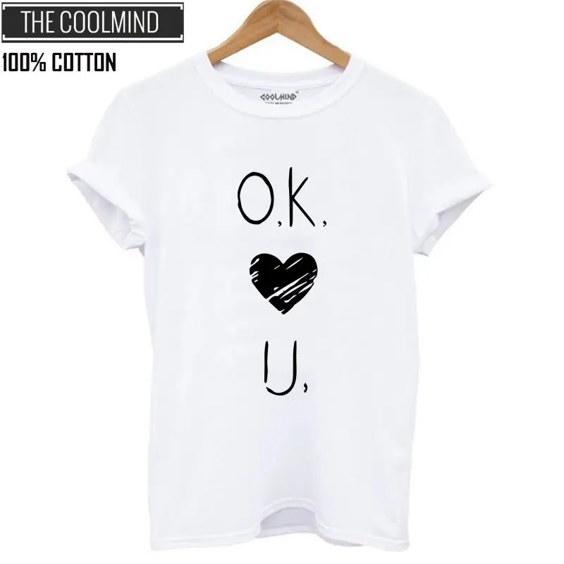 COOLMIND Z 100% хлопок с коротким рукавом ок love you печати Женщины Футболка Повседневная летняя обувь футболка женские свободные трикотажные футбо...