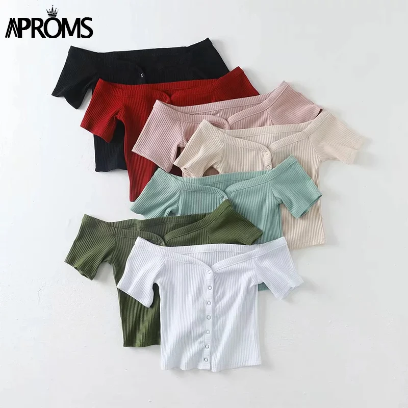 Aproms элегантный однотонный тонкий с открытыми плечами укороченный топ женский сексуальный ребристый укороченный топ на бретелях Женский Ул...