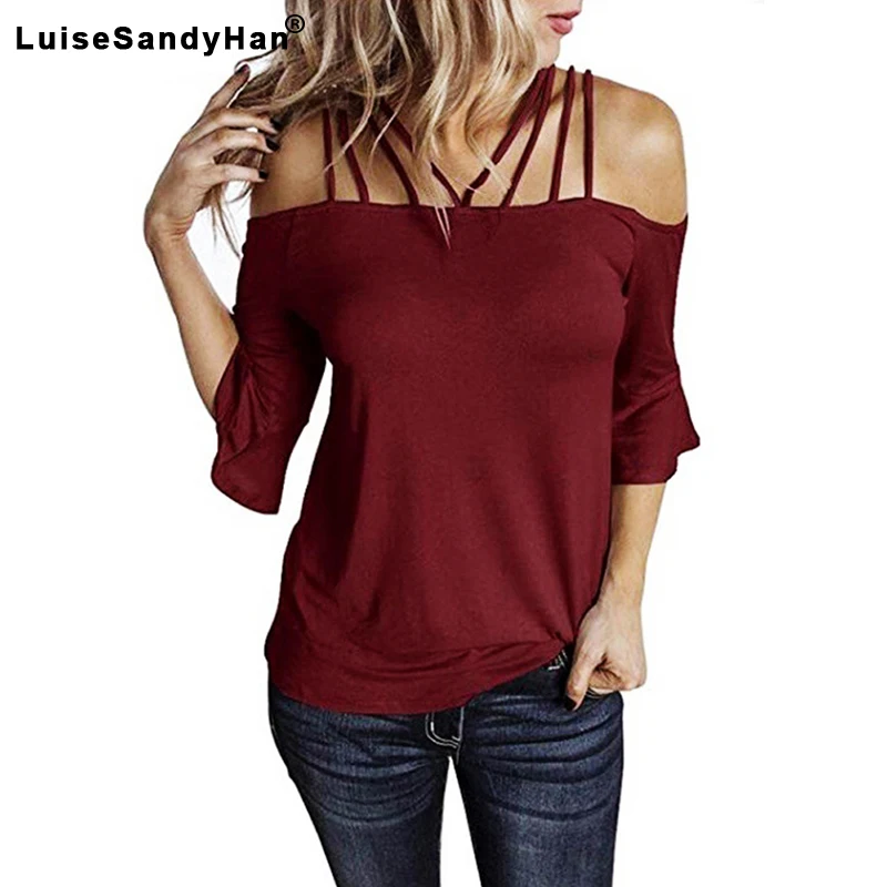 Модные, пикантные футболка женские Полые без бретелек, с короткими рукавами, с круглым вырезом и принтом средней длины Футболка Пуловер Для женщин 2020 летом прохладно