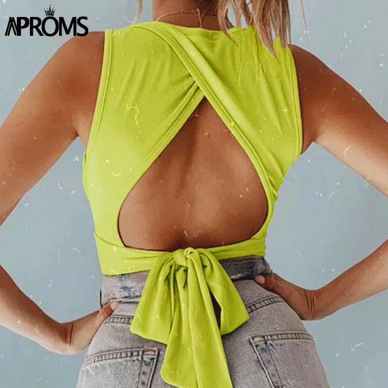 Женский винтажный Топ Aproms, однотонный ребристый трикотажный топ на бретельках с завязками сзади, белый стрейчевый кроп-топ для лета 2020