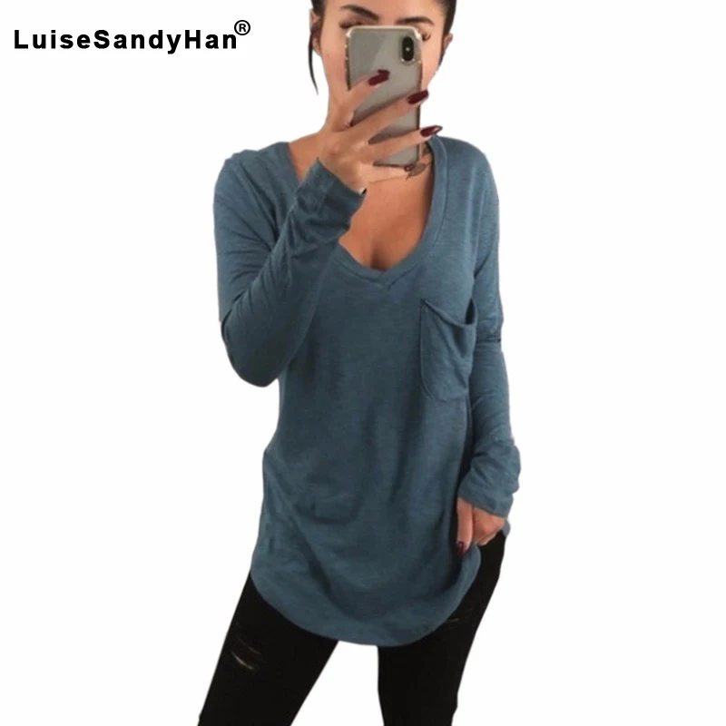 Сексуальная Темно-V шеи Для женщин футболка панк футболки с длинными рукавами, Blusas Плюс Размеры Ropa женские футболки Feminina Vetement Femme