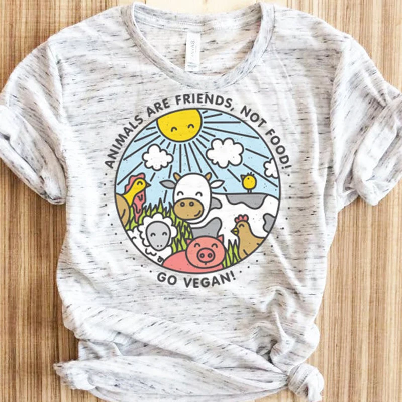 Go Vegan, забавные женские футболки с принтом животных, друзья, без еды, футболка, 90s гранж, летняя модная футболка из чистого хлопка с графическим рисунком