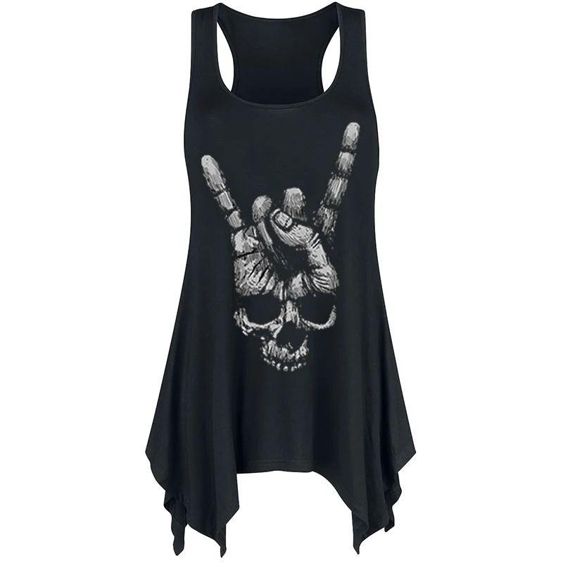Лето Топы Для женщин 3D жилет Harajuku череп печати бретели пикантные модные панк-рок девушка футболка WS9324V
