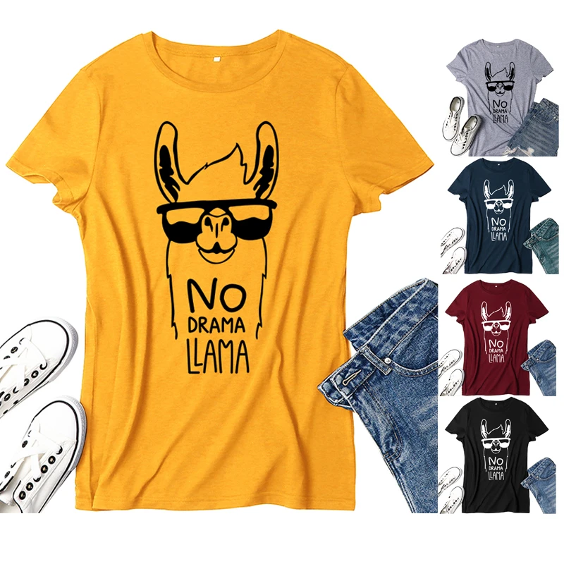 2020 Женская футболка без драмы с изображением ламы, летняя футболка с коротким рукавом и круглым вырезом с принтом Harajuku, Повседневная модная женская футболка